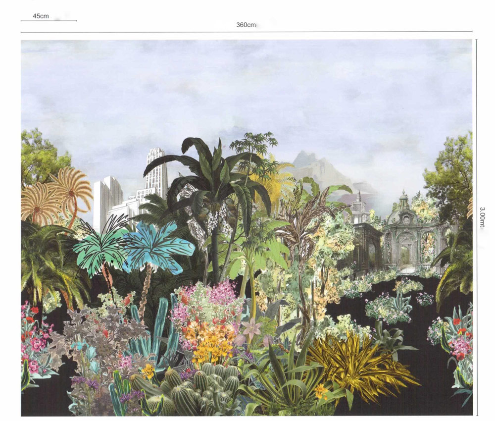 Venduto a set formato da 8 pannelli larghi  45cm l’uno e alti 300cm. Misura totale della composizione: L 360cm H 300cm. Copertura parete 10.08 mq. Collezione: Incroyables et Merveilleuses Wallpapers