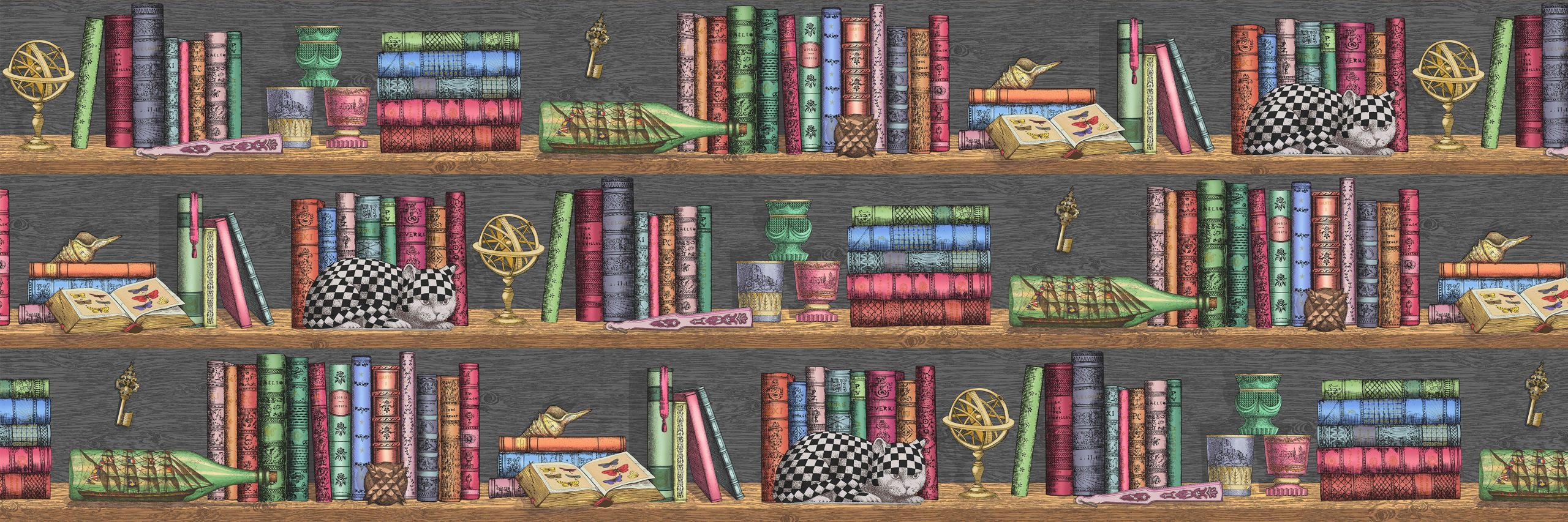 Dalla mente miracolosa e dalla mano dettagliata di Fornasetti, combinata con l’abilità artigianale e artistica dello studio di design Cole&Son, nasce questa collezione classica di carte da parati stravaganti che ispirano l’immaginazione con l’ingegno e l’originalità del maestro milanese.