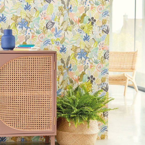 Riesci a individuare il ghepardo nascosto nel profondo del fogliame tropicale? Una carta da parati ricca di personalità e colori vivaci, Kumana ravviva la casa!